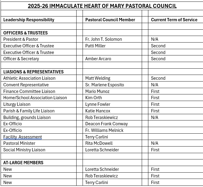 The purpose of IHM’s Pastoral Council is to assist and advise the Pastor in: